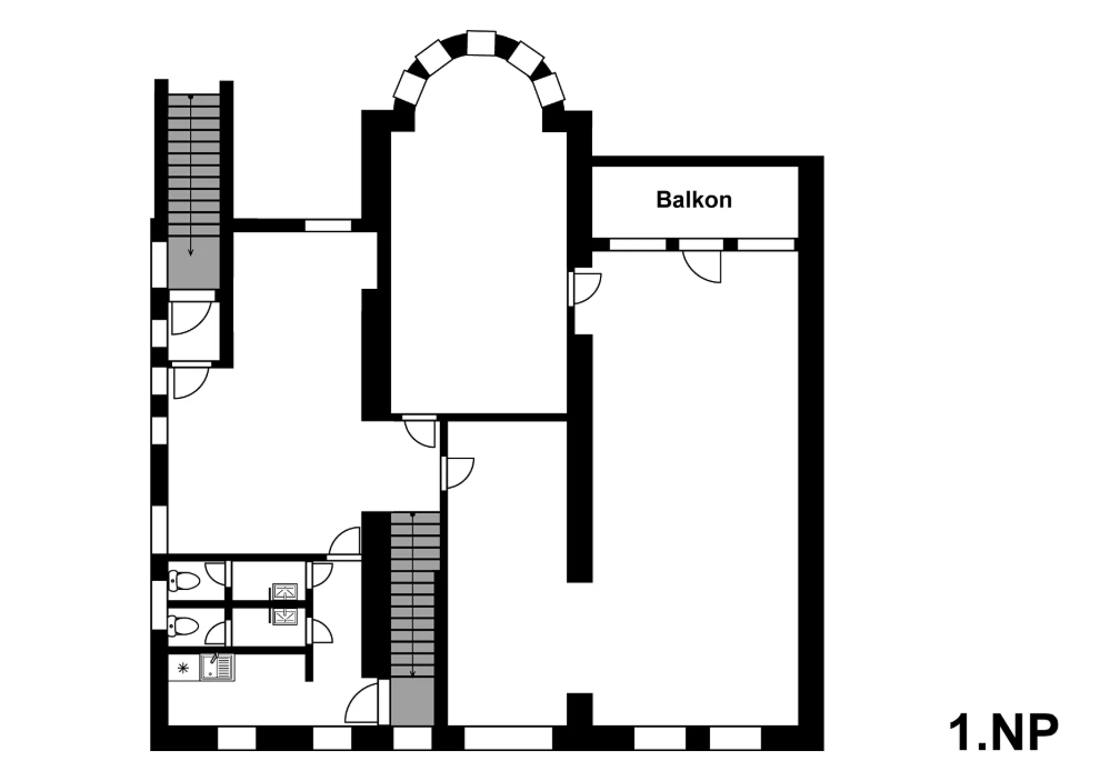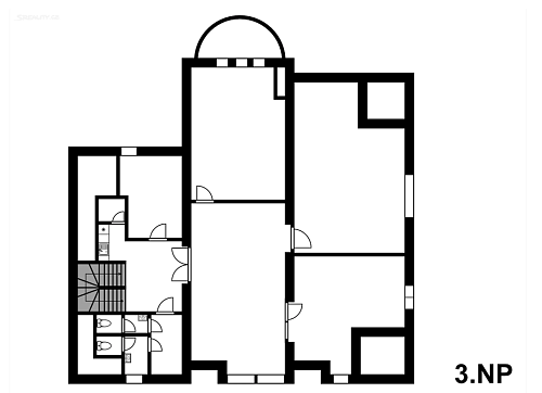 3x NP po cca 175 m2 (1.NP, 2.NP, 3.NP), tedy 525 m2