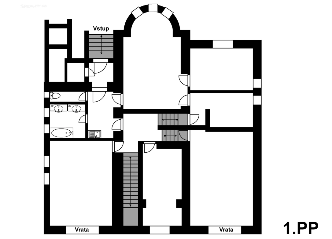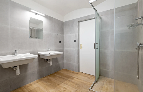 1x NP cca 100 m2- 1.PP (2x garáž, 2x pokoje, tech.místnost, sprcha, WC atd.)